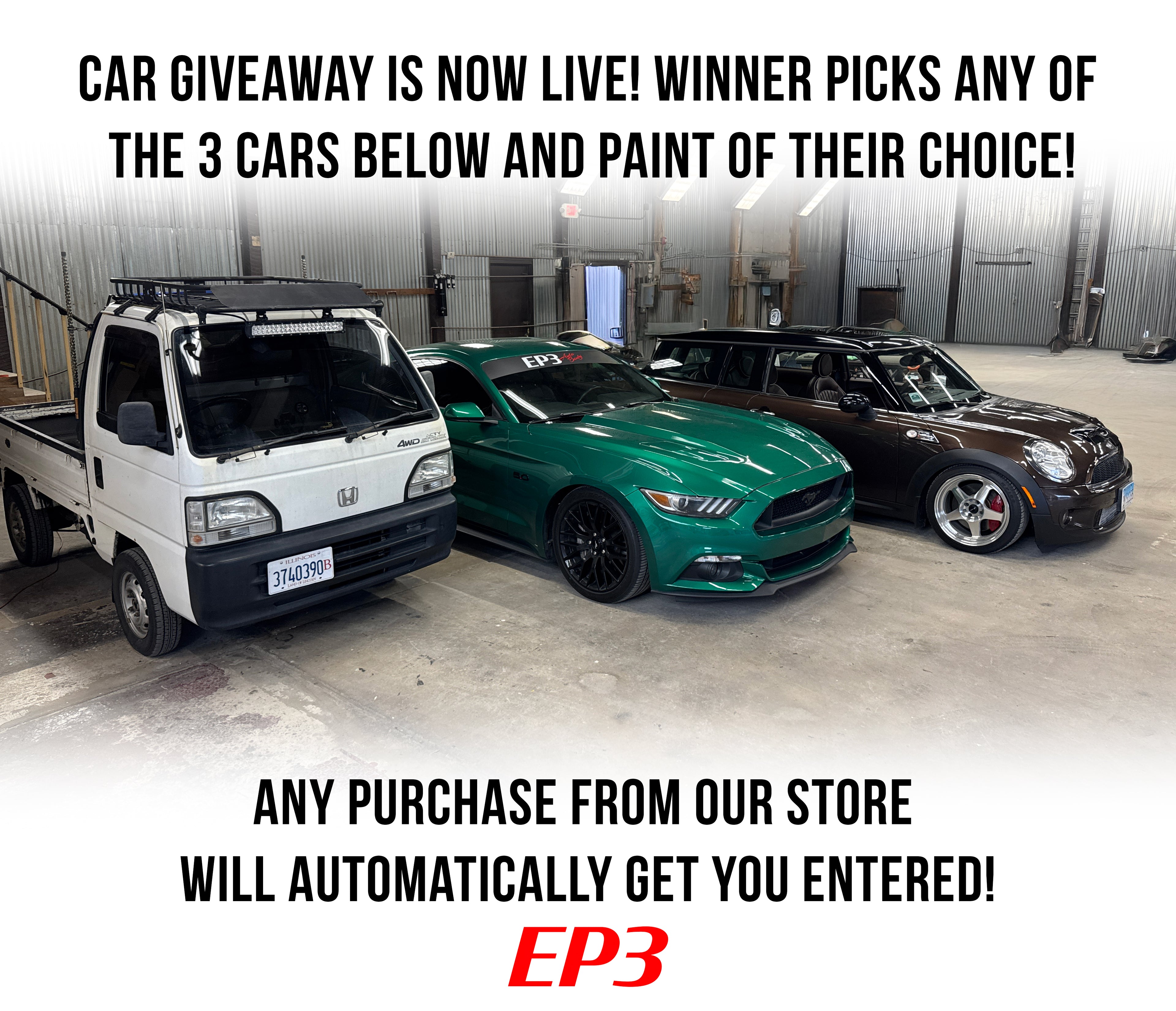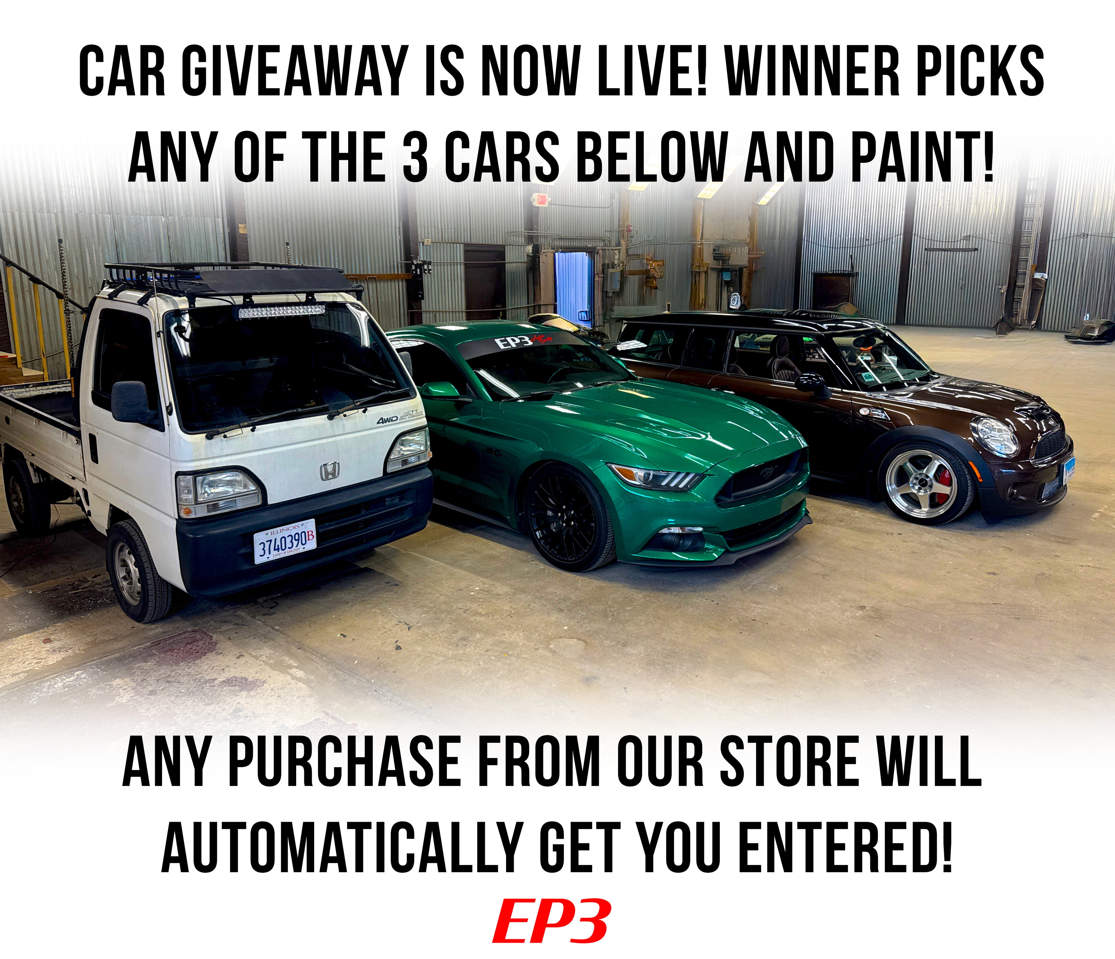 Giveaway is NOW LIVE! Winner will pick vehicle and paint!